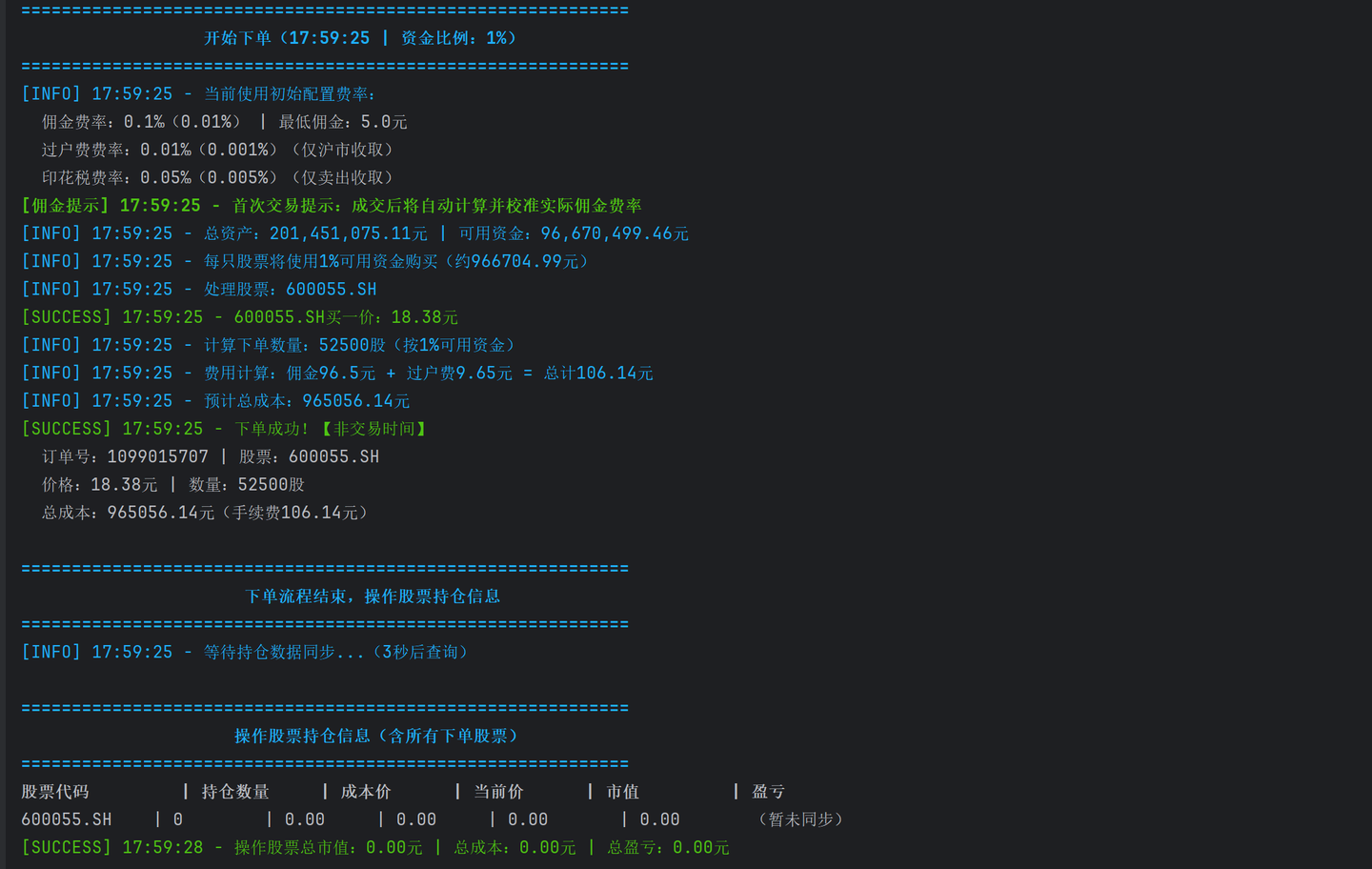 自动算仓位 + 下单:设好每只股用多少资金(比如 10% 可用资金),工具会自动算能买多少股(还会预留手续费,避免资金不够),不用手算;